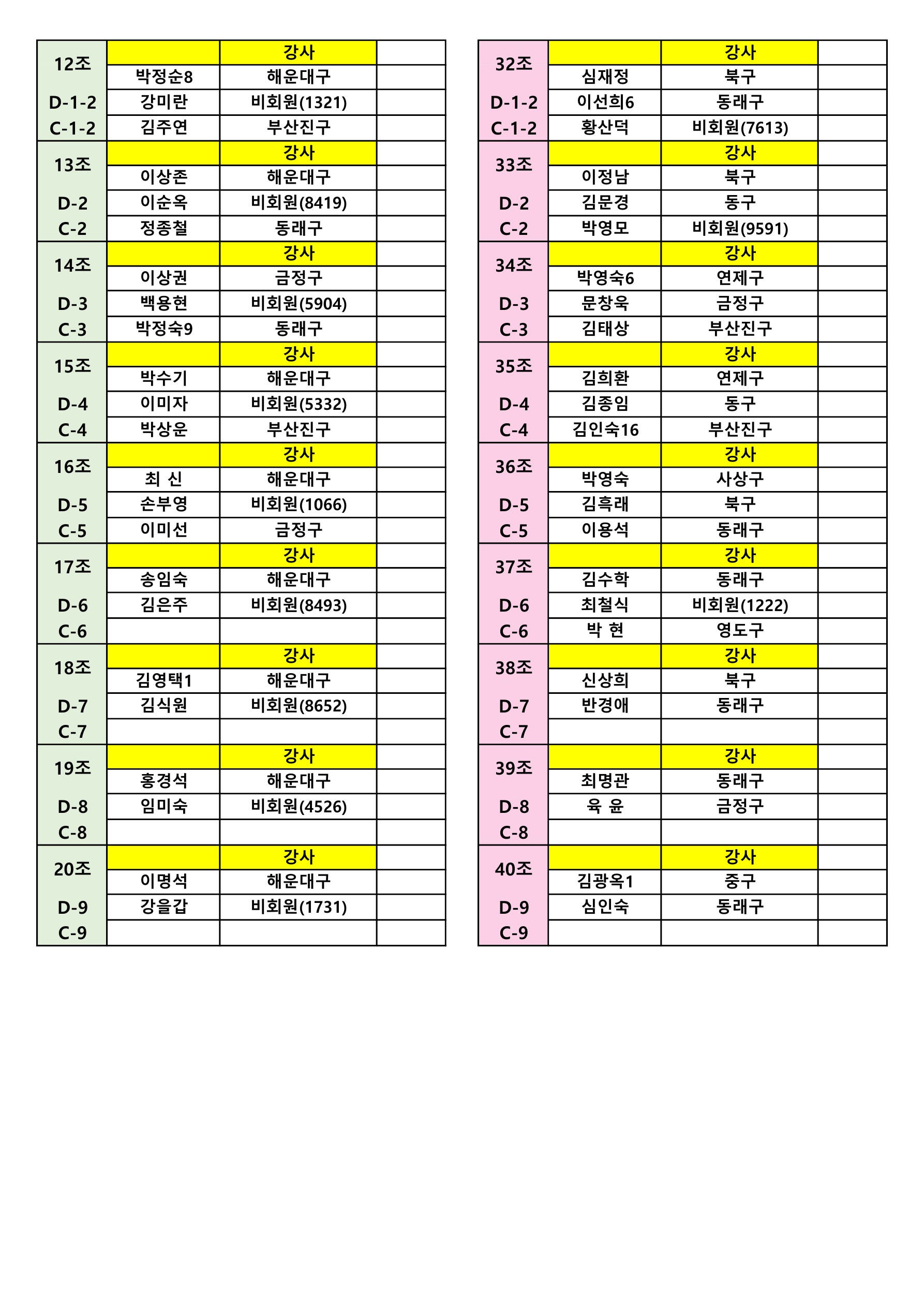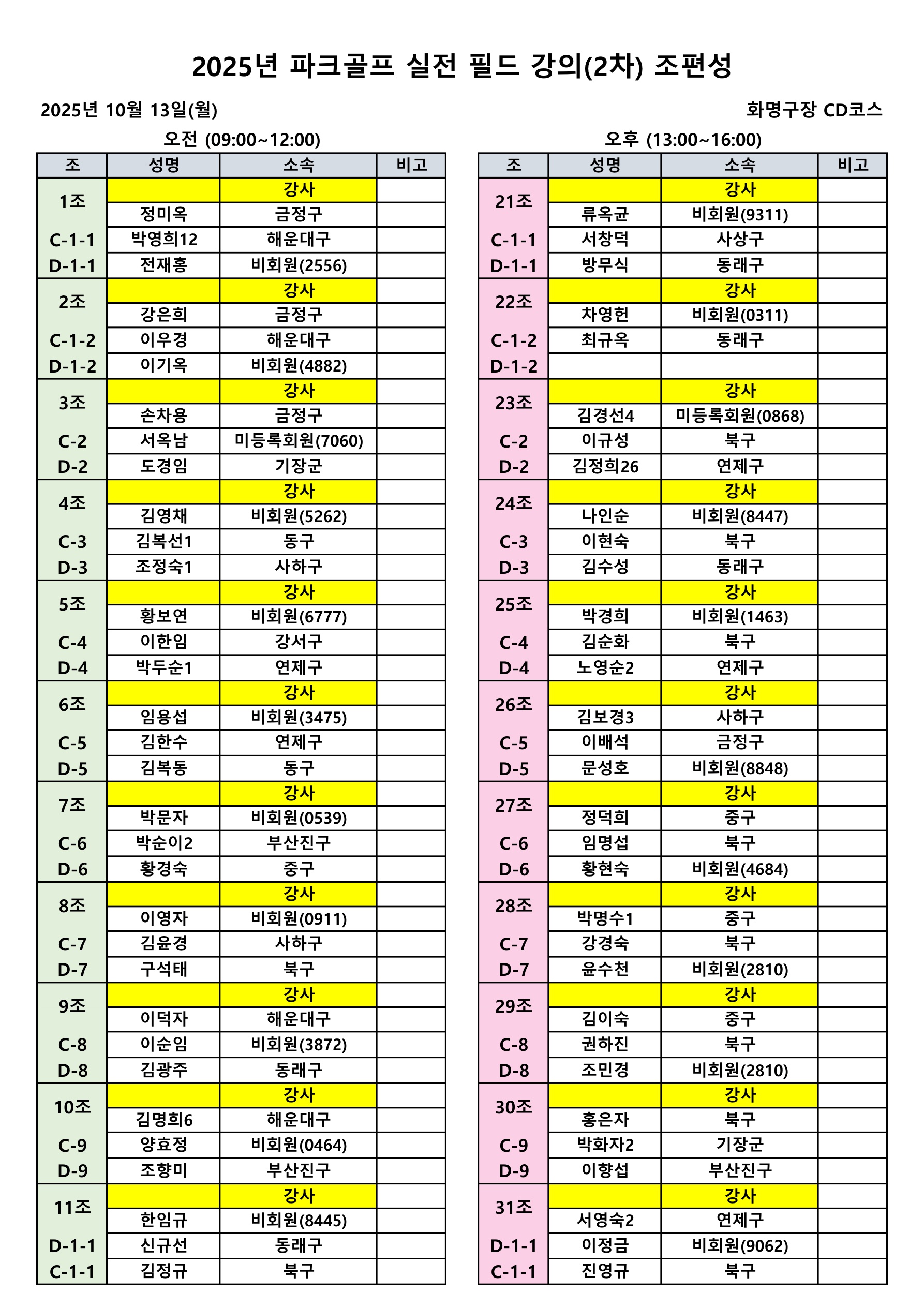 2025년 파크골프 실전 필드 강의(2차) 조편성 안내