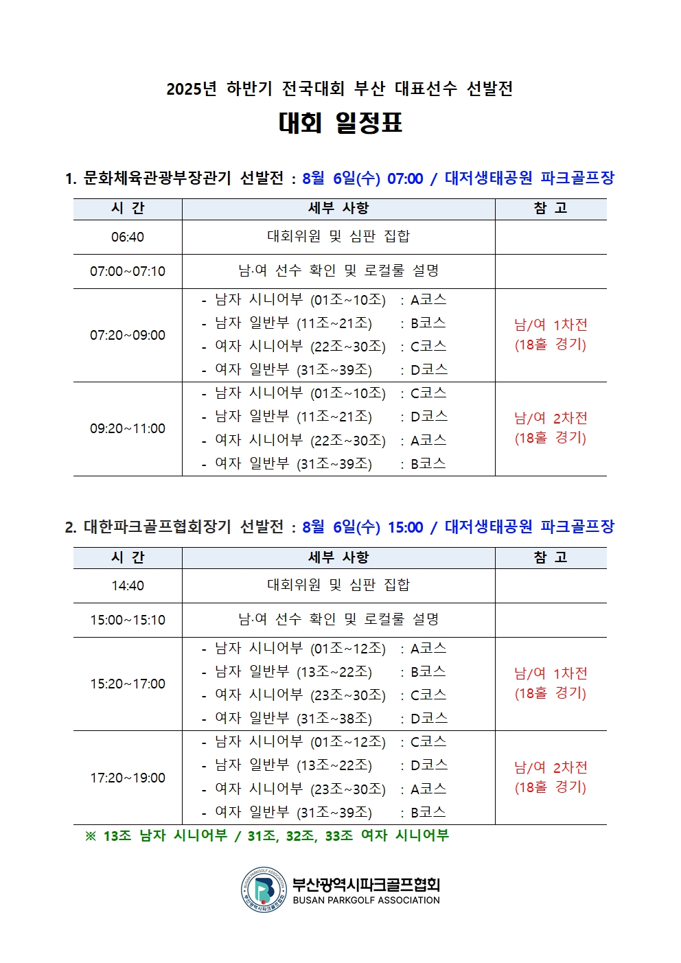 2025년 하반기 전국대회 부산 대표선수 선발전 2차 일정 변경 (8/6)