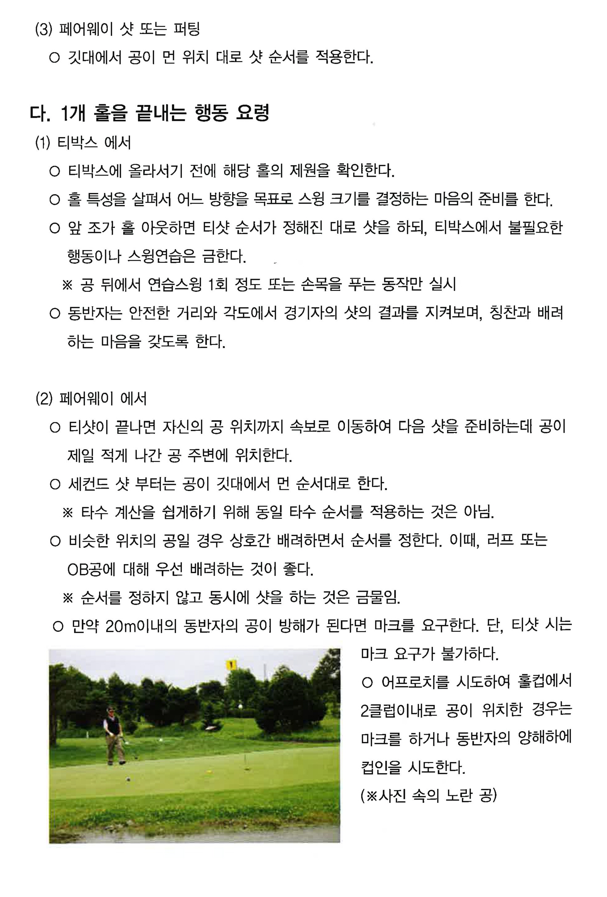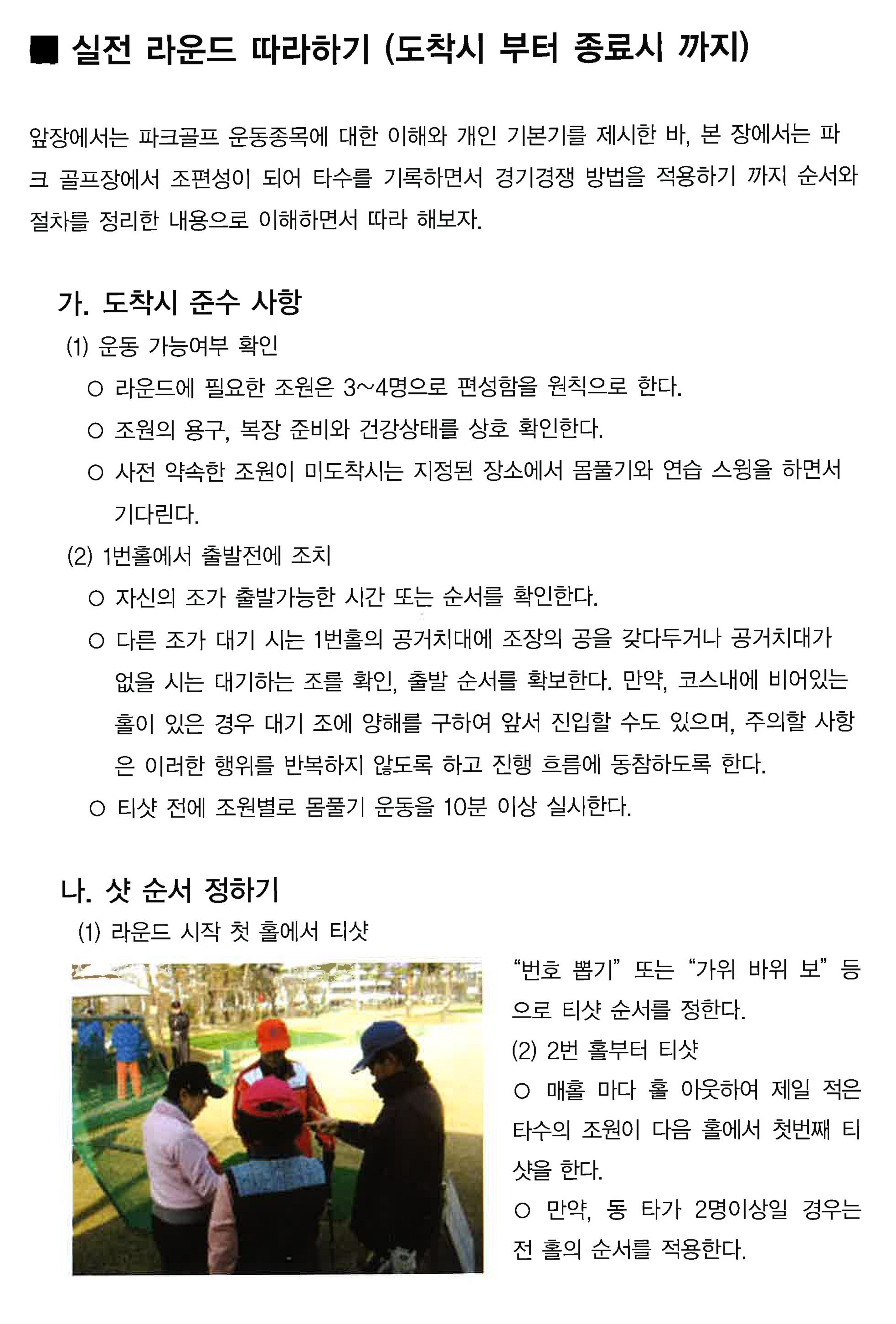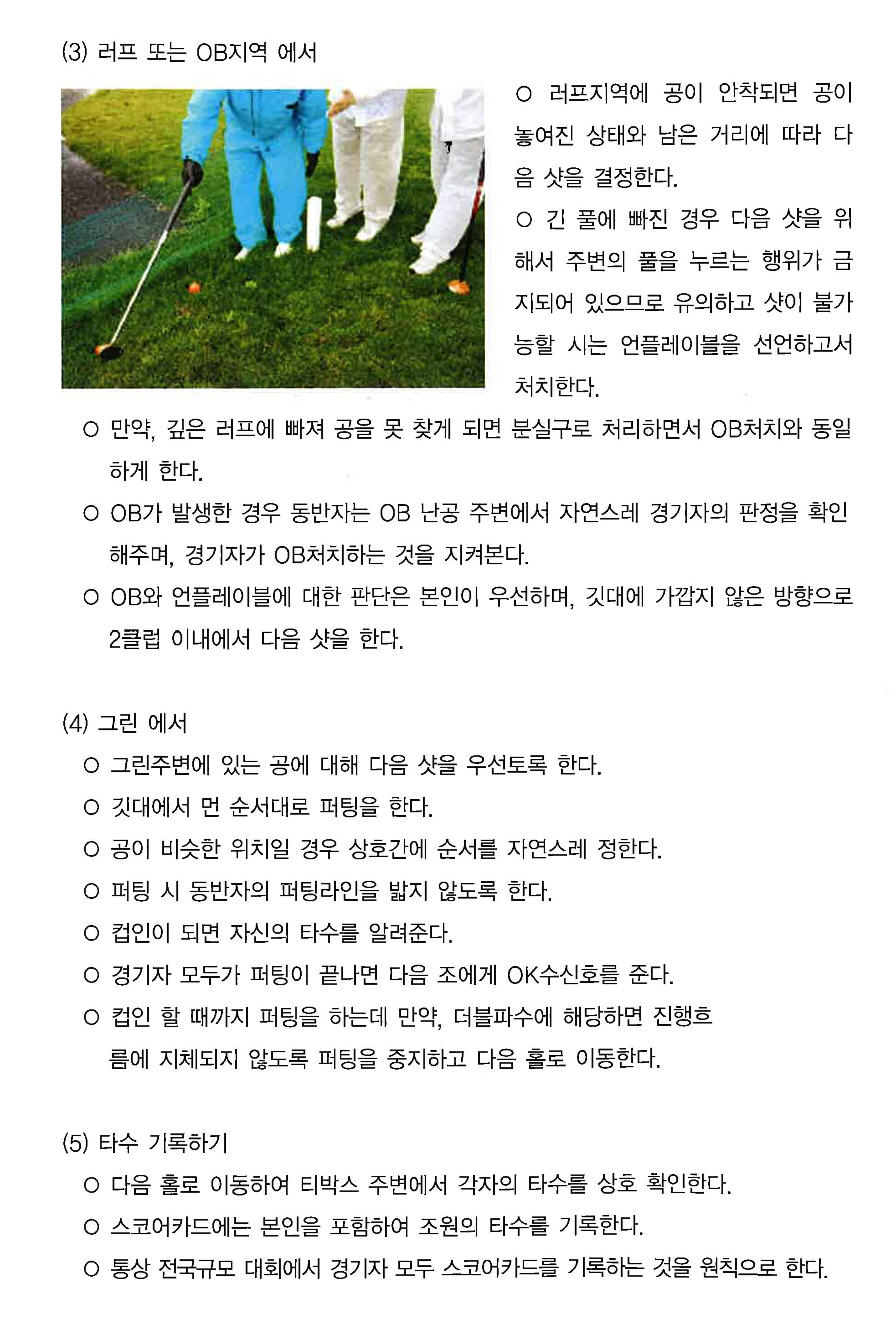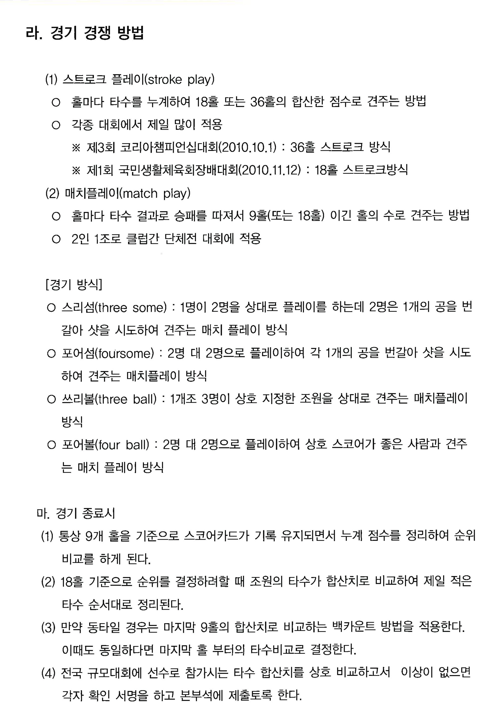- 파크골프는 일반골프룰보다 재미있게 즐길 수 있도록 재편성한 스포츠로서 도심의 공원또는 유휴부지에 조성하여 남녀노소장애인 모두가 함께 즐길 수 있는 특징을 가지고 있다.